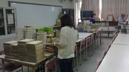 西淀川図書館・東淀川図書館のコーディネーターさんに、図書整理プランを作成していただきました。この夏休みを利用して、図書館のコーディネーターさん・元気アップコーディネーターさん・PTAの(現元)役員さん・歌島中学校教員の十数名が力を合わせて作業をしていただいております。