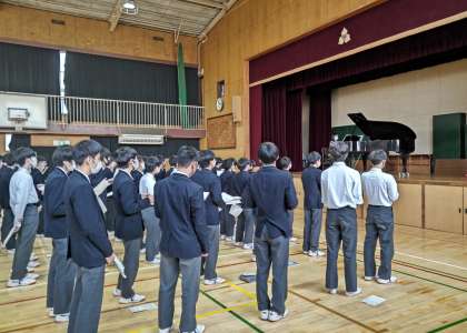 1日の3年生は、男子が歌の練習を体育館で行いました。前回よりも声もよくでるようになったようです。女子は各教室で、感謝の気持ちをこめて手紙を書きました。口ではいえない気持ちをうまく伝えてください。
