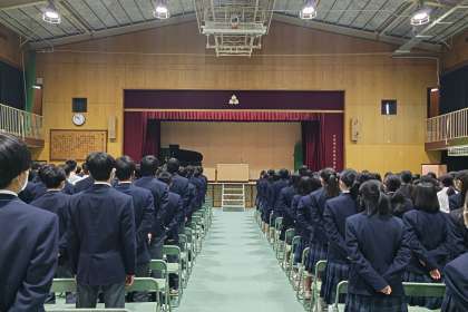 式全体の流れを知り、卒業証書の受け取りなどの練習をしました。概ねきちんとできていましたが、全体がきちんと揃うようにさらに心がけていきましょう。