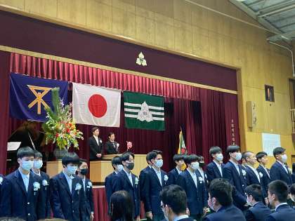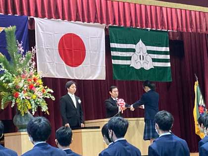 呼ばれた卒業生は立ち上がって保護者の方を向き成長した姿を見ていただきます。代表生徒が壇上で証書を受け取ります。