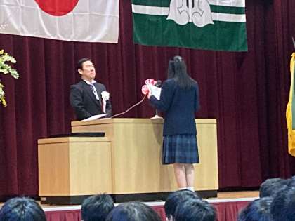 在校生代表より、卒業生に向けて送辞を、卒業生代表より在校生、教員、保護者のみなさまに向けて答辞がのべられます。