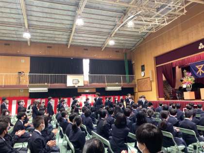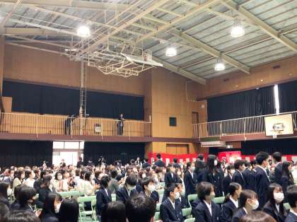 担任の先生を先頭に、新入生が退場していきます。この後教室で教科書を受け取ったり、担任の先生からの連絡などが行われます。