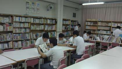 開館を待ち焦がれていたのか、いつも以上に多くの生徒が図書室を利用していました。夏休みに借りた図書の返却にきた生徒、図書を閲覧している生徒、借りる手続きの生徒と活気がありました。