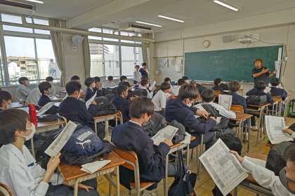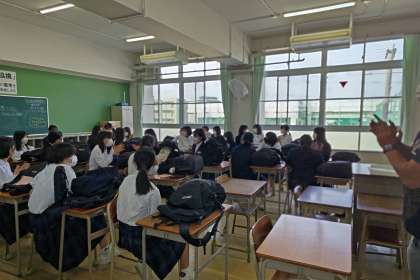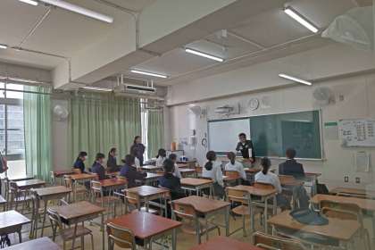 ?みんな真剣に話を聞いています。この後、部活動によっては練習が行われます。