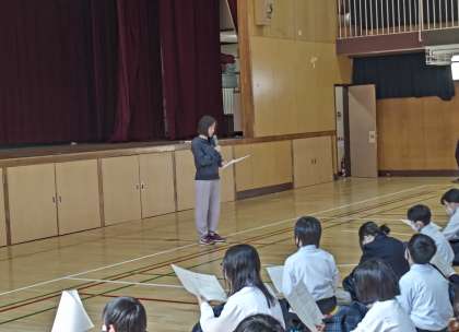 1年生は、9日の6時間目に体育会で、テストについての話を行いました。