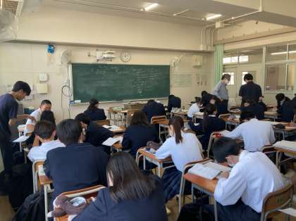 3年生の授業の様子です。数学にて微分積分分野の問題に取り組んでいます。