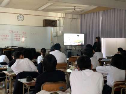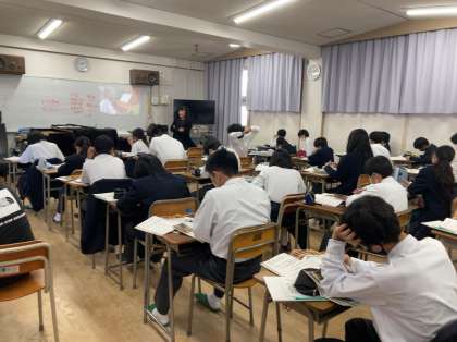 1年生の授業の様子です。音楽で鑑賞の授業を行なっています。バロック音楽についてヴィヴァルディの曲などを取りあげながら学習に取り組んでいます。