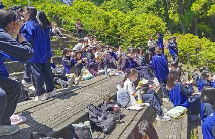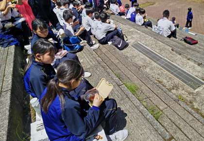 写真撮影のあとは、楽しい昼食のひととき、きちんと行動できているので、時間にも余裕があります。