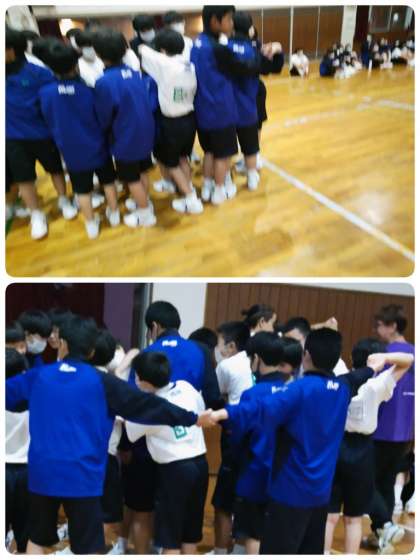 最初の種目は、人間知恵の輪です。男女別に全員が参加しました。まず、男子の競技です。