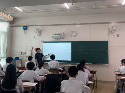 3年生数学の授業のようすです。微分積分を活用し、計算を簡単にしようというテーマで問題に取り組んでいます。