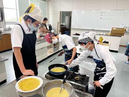 テキパキと調理と片付けまで行うことができました。次は、1年生も入っての全体実習を行う予定です。