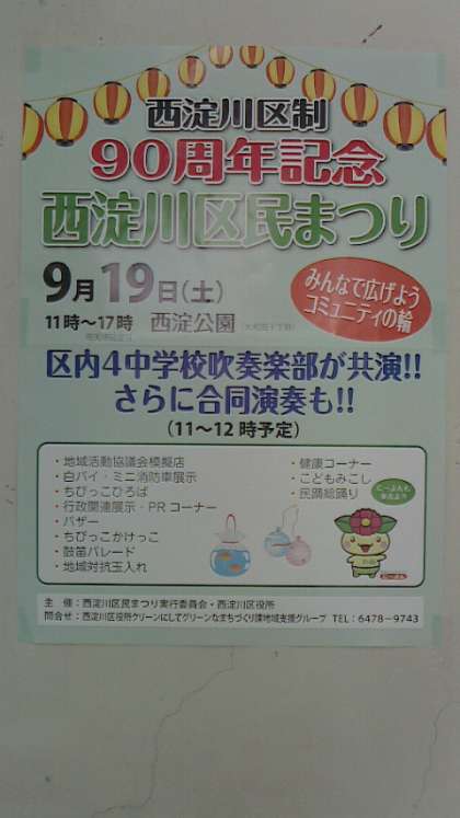 「西淀川区制90周年記念西淀川区民まつり」が、9月19日(土)11時よりに西淀公園にて開催されます。