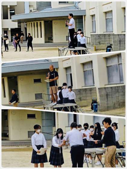 全校集会で表彰とお二人の先生からお話がありました。