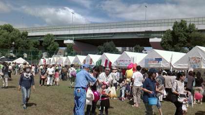 西淀川区民まつり会場の西淀公園は広く、いろんな地域団体のテントが軒を並べていました。