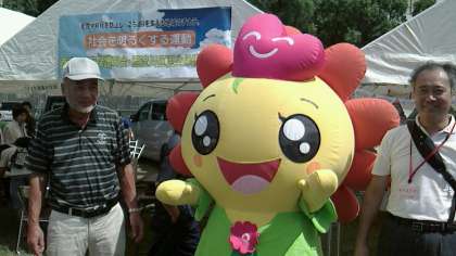 隣のテントには元PTA会長山下さんと現PTA会長竹本さんが、マスコットと一緒におられました。