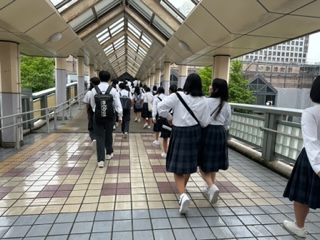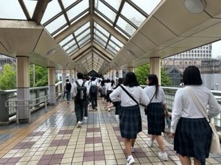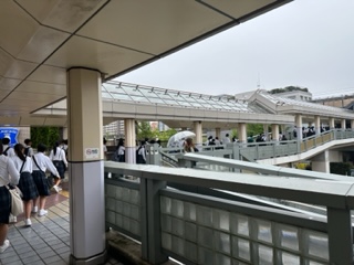 ディズニーランドのある舞浜駅まで電車で向かいます。ホテルから最寄りの新浦安駅は屋根があるので、雨でも安心です。