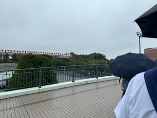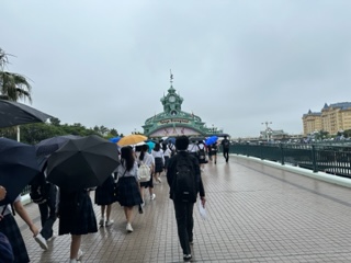 ディズニーランドが見えてきました!その前に手荷物検査があります。