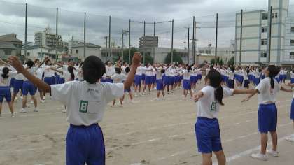 体育委員を中心に、準備体操・校歌斉唱・集合整列等の練習をしました。