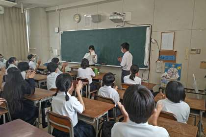 終学活で、先生に感謝の気持ちをこめて、お礼の言葉を述べたり、メッセージカードを渡したりしました。