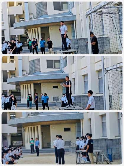 6月19日(月)の全校集会と避難訓練(6限)のようすです。