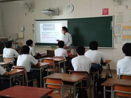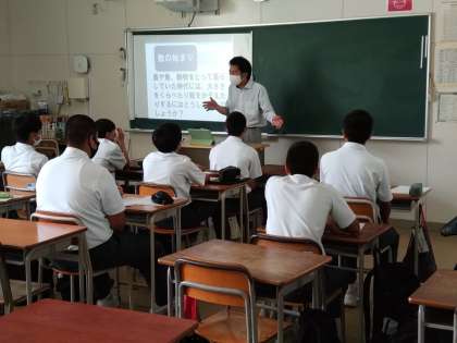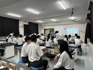 関西大学北陽高等学校の授業です。数学と理科の授業でした。数学の方は数の歴史、理科の方は酸とアルカリの実験を行いました。
