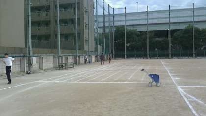 一方予行の舞台となる第2グランドでは、先生方がラインを引いたり、放送器材の準備にとそれぞれのパートで大忙しです。第2グランドは静寂の中黙々と作業が進んでいます。