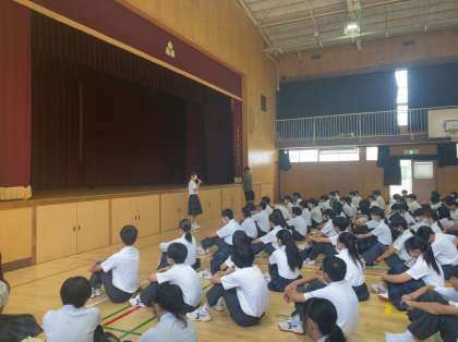 委員長からは残りの1学期、気を緩めず過ごそうと話しました。西川先生の講話では先生自身の失敗談を交えて、進路を決める際の注意点や夏休みに実施される高校のオープンキャンパスに積極的に参加しようというお話しがありました。