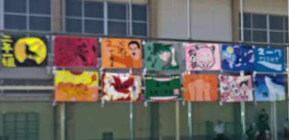 学級旗のデザイン作成は、全学年とも、保健体育科の課題です。クラスの色が生かされる素敵なデザインを考えていきましょう。