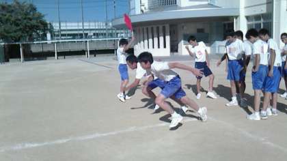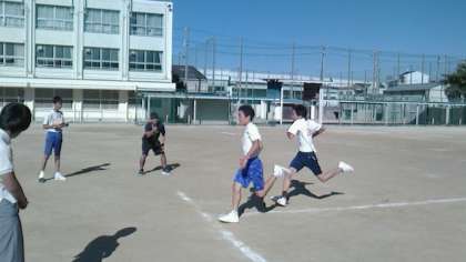 グランドでは、保健体育科の3年生男子授業が行われております。