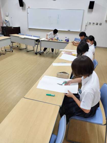選挙に向けてのたすきの作成を行いました。学校のために頑張ろうとたすきを書く文字にも気持ちがこもります。