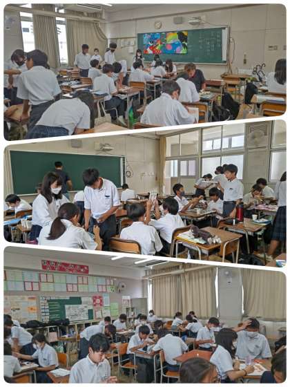 1年生は、22日の学活の時間に文化発表会にむけての取り組みを進めていきました。当日まであと一週間です。清書が進むにつれて、教室内が、華やいできた感じもしてきました。