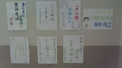 下の写真は、廊下に掲示されていた立候補者の選挙ポスターです。