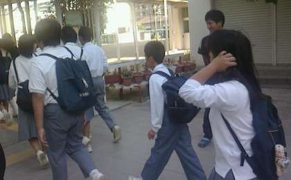 冬服への衣替え調整期間中の、10月13日(火)の登校時の様子です。生徒たちの登校時の服装は、半袖・長袖ポロシャツ・ブレザーの生徒が入り交じっています。先週までは半袖の生徒が多くいましたが、今朝は長袖ポロシャツの生徒が大半となっていました。ブレザーの生徒はまだちらほらです。