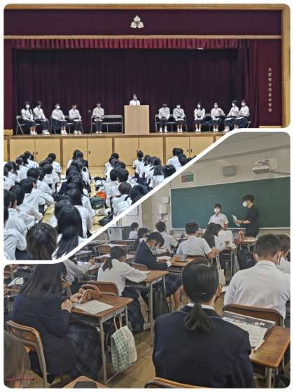 6日の6時間目に生徒会役員選挙を行いました。1、2年生は体育館で、3年生は各教室での放送で、立候補者の演説を聞き、その後各教室で投票をしました。