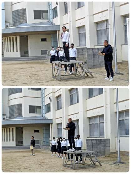 古澤先生からは、体育大会では、「努力は感動を呼ぶ」という言葉を忘れずに頑張ろう、髪型や服装に気をつけようという話がありました。また、スマートフォンやSNSの使い方や、使う時間帯についての話をしました。