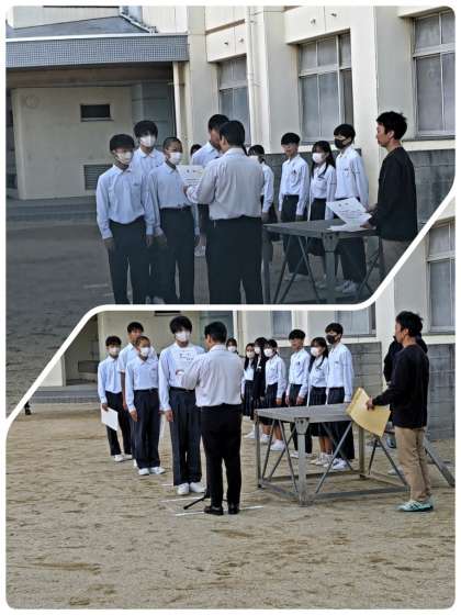 校長先生からは、体育大会の学年練習や、体育の授業のようすを見ていると、皆さんの真剣な姿勢が伝わってきます。27日の体育大会は、日頃の頑張っている成果をしっかり出してほしいという話がありました。
