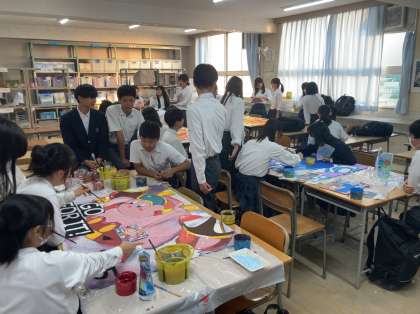 各クラス最後の仕上げに取り組み、素敵な学級旗を完成させました。体育大会本番では学級旗の下、クラス一丸となって競技に応援に頑張りましょう。