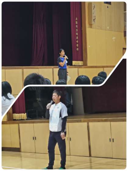 丸橋先生からは、学校生活全体のあり方についてで、朝、登校してからのすごし方、終わりの学活を迎えるときの姿勢などを見れば、その人の人となりを垣間見ることができるため、一つ一つ大切に過ごしていこうということでした。