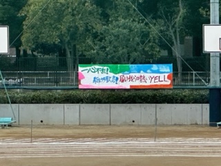 体育大会に向けての準備が終わりました。今年のスローガンが書かれた横断幕は美術部が作成しました。