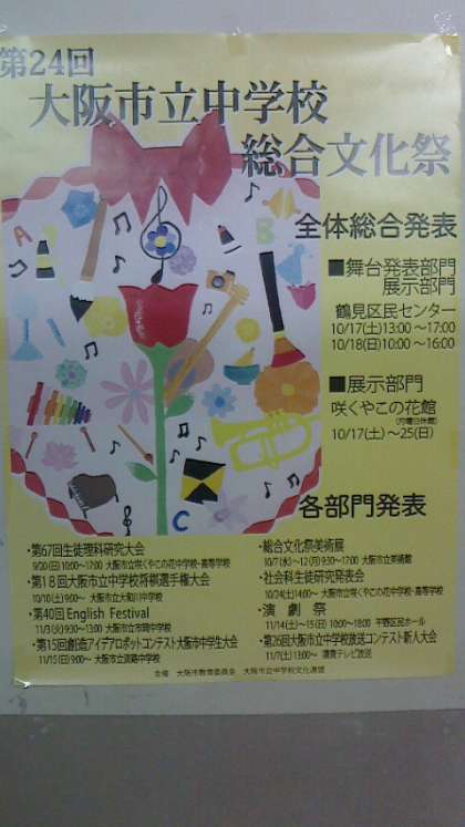 10月17日(土)18日(日)に、大阪市中学校総合文化祭が鶴見区民センターにて開催されます。