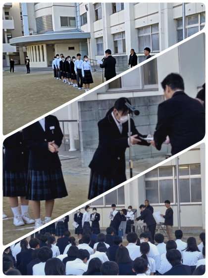 そのあと、生徒会役員、後期の学級委員の認証式と、体育大会の部活動対抗リレーの表彰を行いました。