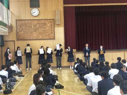 昨日投票で行われた学級旗コンクールの結果は、最優秀6組、第二位7組、第三位5組でした。順位は着きましたが、どの学級旗も素晴らしいものでした。
