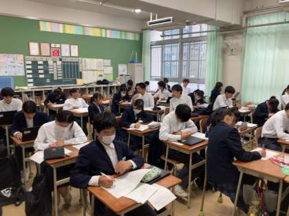 10日金曜日、6限目に3年生は自己申告書の作成に取り組みました。まずは自己分析として、3年間の中学校生活を振り返って、頑張ってきたこと、そこから学んだことなどを整理しました。