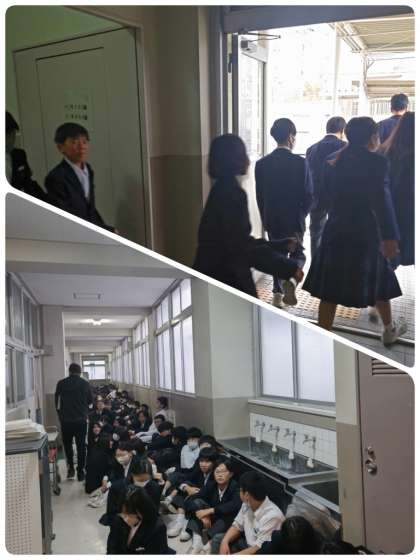 地震が発生し、そのあと津波警報が発令されたという想定のもとに行い、運動場に集合したあと、三階以上の校舎内に避難しました。その後、副校長先生、古澤先生から講評がありました。