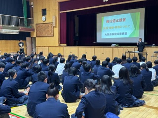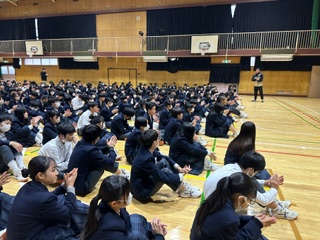 喫煙・飲酒・薬物の危険性、なぜきまりを守らないといけないのかを中心に話をしていただきました。しっかり学校のルールを守り、社会に出ても困らないように心がけてください。