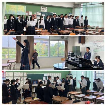 本日、6時間目に合唱コンクールに向けたクラス練習を行いました。今日の練習は教室で行うクラスが多く、各パートに分かれて練習するクラスや合唱形式で練習するクラスなどがありました。