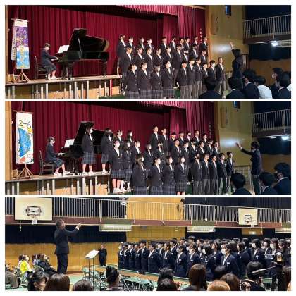 生徒たちは、音楽の授業や総合の時間、あるいはご家庭など、たくさんの時間を使ってこの日のために合唱曲を仕上げてきました。目に見える結果も大切ですがそれまでの日々の積み重ね、今日に至るまでの過程は、本当に全員が満点の合唱コンクールでした。この経験を糧にさらにクラスとして、個人として成長していく姿を期待しています。