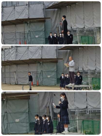 校長先生からは、3年生は本日から進路懇談、1、2年生は木曜日から保護者懇談が始まりますが、自分のよかったことや、改善すべきことを考えておいて、話せるようにしておこう、という話がありました。