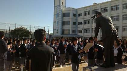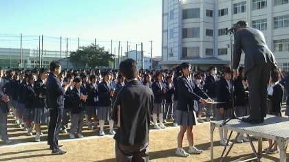 また、生徒指導の古澤先生からは、冬服になり寒暖の差が大きく、ブレザーを脱いだり着たりしています。通学時、集会時、儀式のときはブレザーを必ず着用してくださいと話されました。