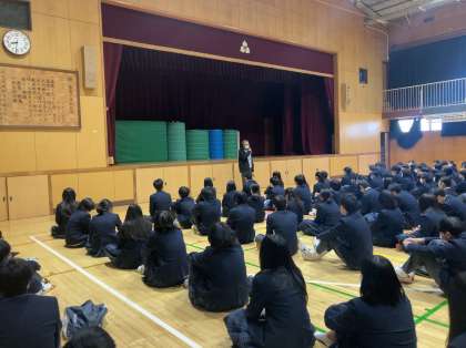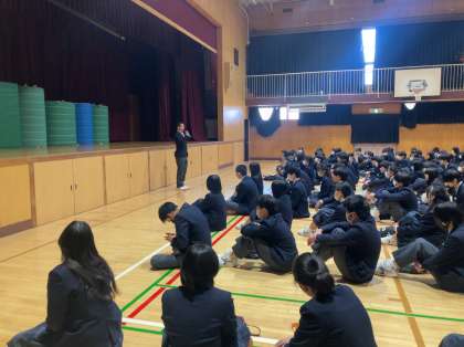 明石先生からは、今日で阪神淡路大震災から29年がたち、当時の中学生の様子であったり、情報が錯綜してしまっていたことをふまえ、何が正しい情報なのか判断する力をつけて欲しいという話がありました。